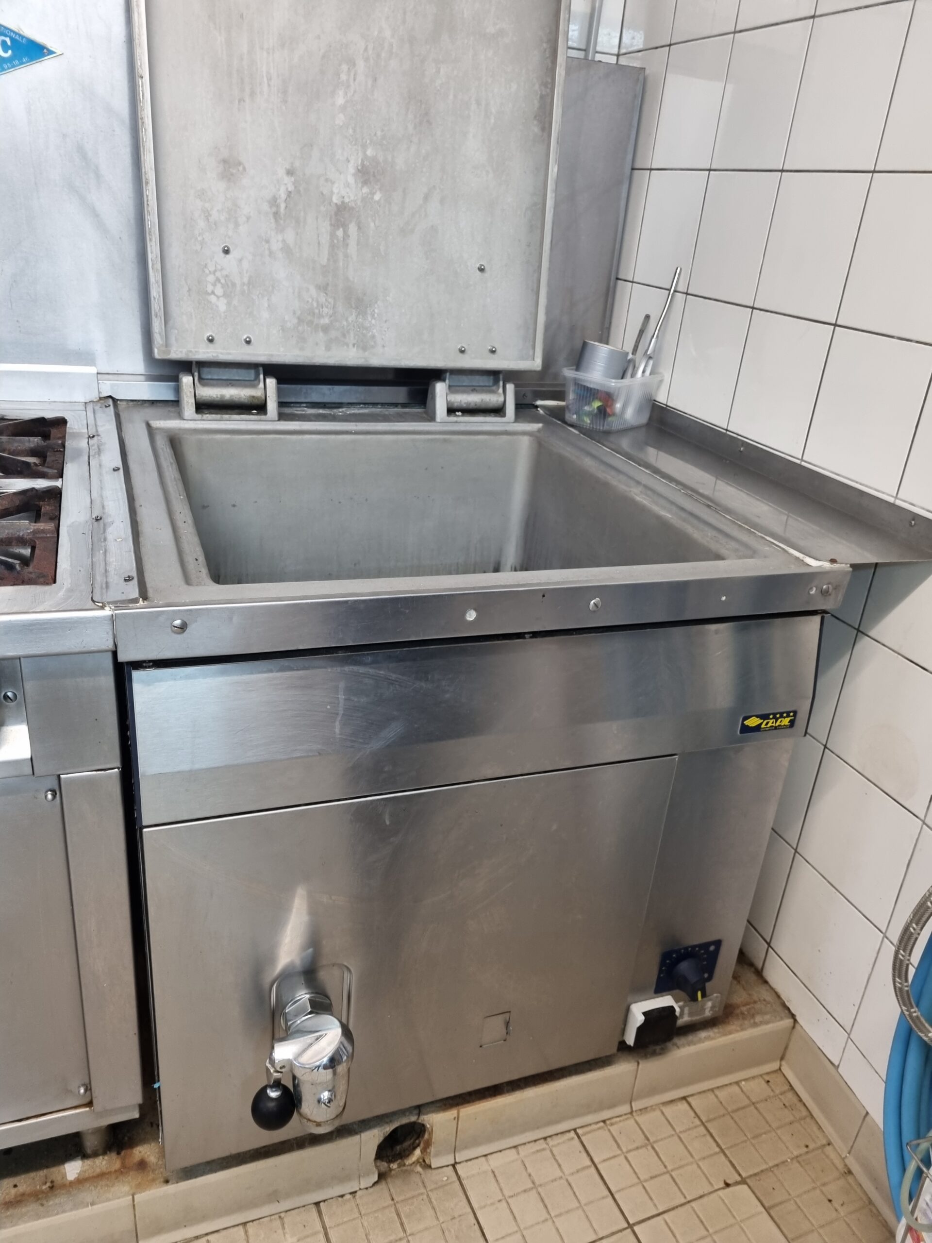 Une marmite CAPIC W221201 170L avec robinet de vidange et thermostat